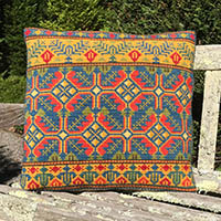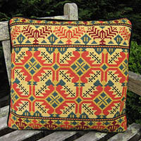 Recently we introduced our two new patterns – HELIOS and MEDIASCH. Both are available in several color choices. Several stitchers have commented on both – “Helios is easy and fast to stitch”, one customer has ordered this new design in several red options to give as gifts; another customer recently emailed “Mediasch is by far the most interesting, beautiful, and complicated pattern” in the cross-point™ pillow kit collection. I have written about the history of both patterns on other pages on the blog. Below just a few of the color choices available.